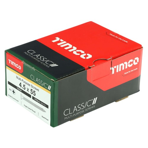 TIMCO Classic Pozi Countersunk Wood Screws - 4.5 x 55mm - Yellow Zinc - Pack of 200