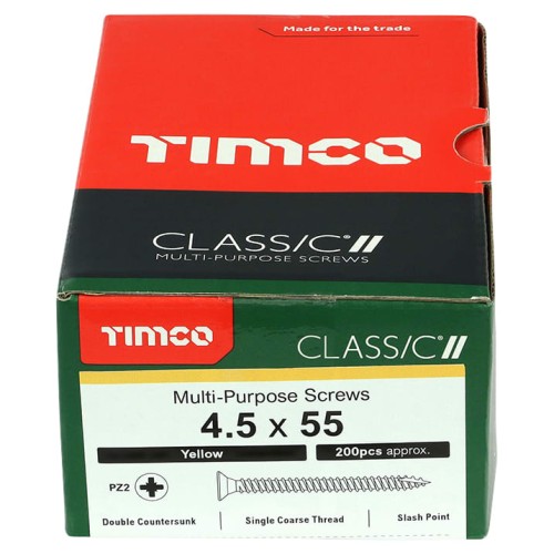 • TIMCO Classic Pozi Countersunk Wood Screws - 4.5 x 55mm - Yellow Zinc - Pack of 200