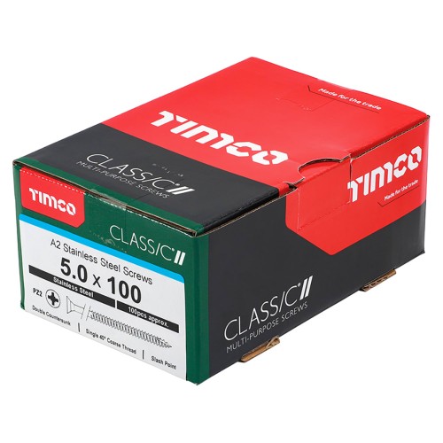 TIMCO Classic Pozi Countersunk Wood Screws - 5.0 x 100mm - A2 Stainless Steel - Pack of 100