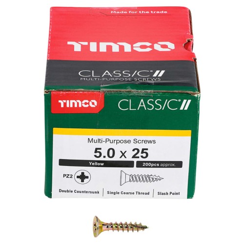 • TIMCO Classic Pozi Countersunk Wood Screws - 5.0 x 25mm - Yellow Zinc - Pack of 200