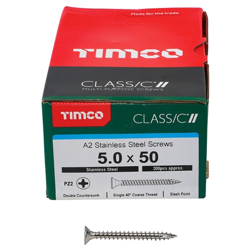 • TIMCO Classic Pozi Countersunk Wood Screws - 5.0 x 50mm - A2 Stainless Steel - Pack of 200