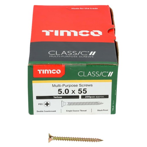 • TIMCO Classic Pozi Countersunk Wood Screws - 5.0 x 55mm - Yellow Zinc - Pack of 200