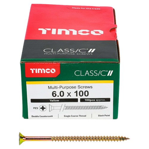 • TIMCO Classic Pozi Countersunk Wood Screws - 6.0 x 100mm - Yellow Zinc - Pack of 100