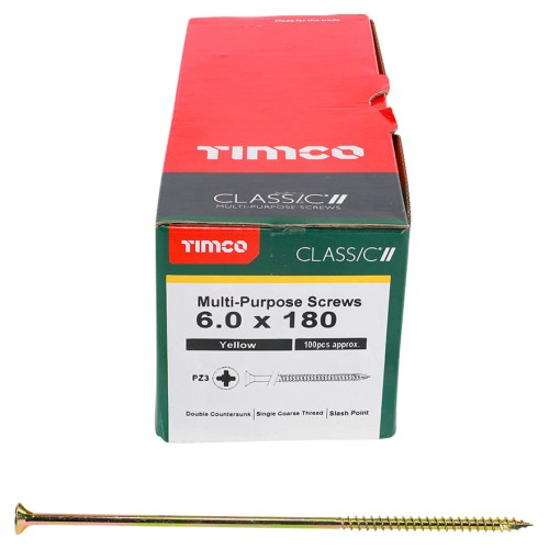 TIMCO Classic Pozi Countersunk Wood Screws - 6.0 x 180mm - Yellow Zinc - Pack of 100
