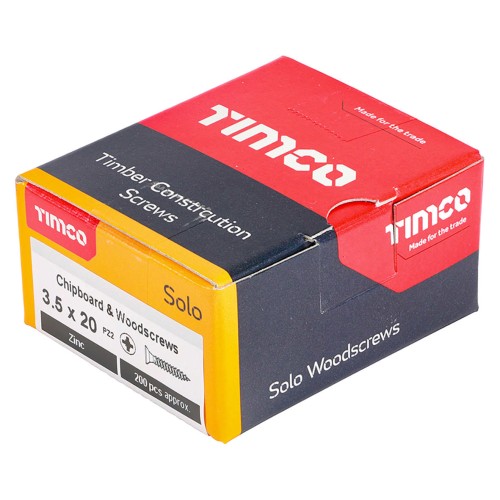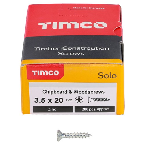 • TIMCO Solo Chippy Pozi Countersunk Wood Screws - 3.5 x 20mm - Zinc Plated - Pack of 200