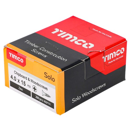 • TIMCO Solo Chippy Pozi Countersunk Wood Screws - 4.0 x 15mm - Zinc Plated - Pack of 200