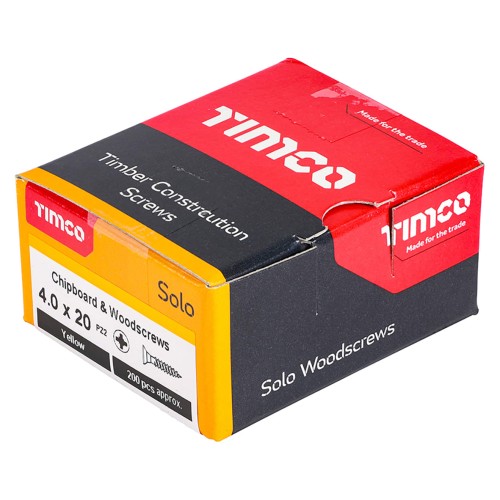 • TIMCO Solo Chippy Pozi Countersunk Wood Screws - 4.0 x 20mm - Yellow Zinc - Pack of 200
