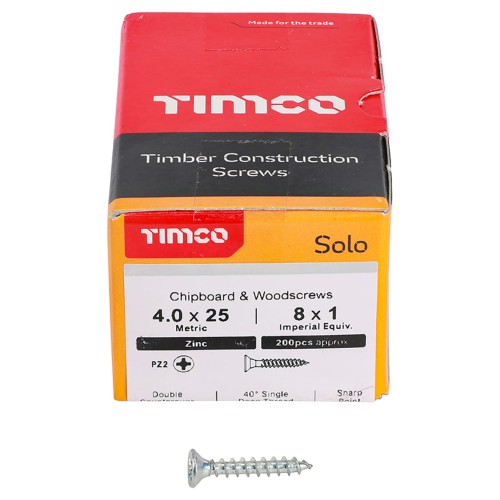 TIMCO Solo Chippy Pozi Countersunk Wood Screws - 4.0 x 25mm - Zinc Plated - Pack of 200