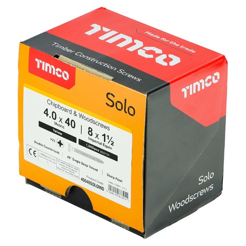 TIMCO Solo Chippy Pozi Countersunk Wood Screws - 4.0 x 40mm - Yellow Zinc - Pack of 1000