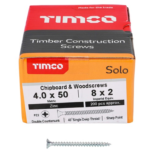 TIMCO Solo Chippy Pozi Countersunk Wood Screws - 4.0 x 50mm - Zinc Plated - Pack of 200