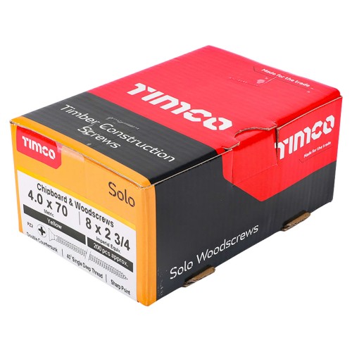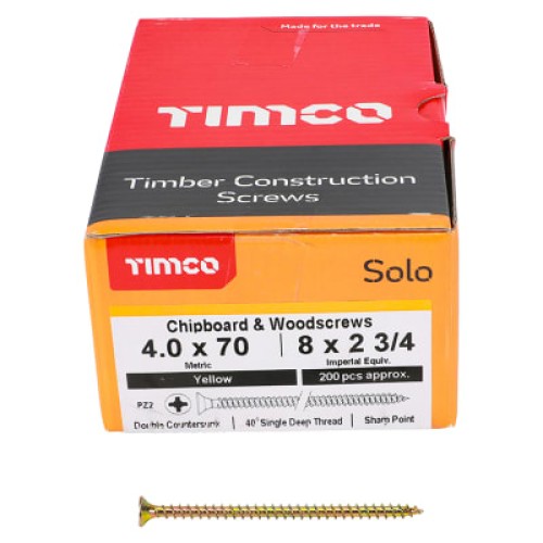 • TIMCO Solo Chippy Pozi Countersunk Wood Screws - 4.0 x 70mm - Yellow Zinc - Pack of 200