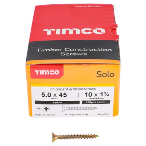 • TIMCO Solo Chippy Pozi Countersunk Wood Screws - 5.0 x 45mm - Yellow Zinc - Pack of 200