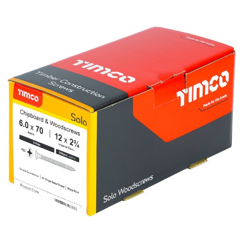 • TIMCO Solo Chippy Pozi Countersunk Wood Screws - 6.0 x 70mm - Yellow Zinc - Pack of 200
