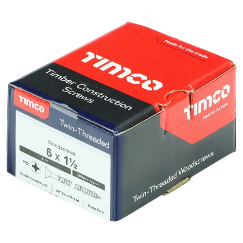 TIMCO Twin Threaded Pozi Countersunk Wood Screws - 6 x 1 1/2" - Zinc Plated - Pack of 200