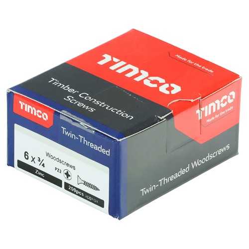 TIMCO Twin Threaded Pozi Countersunk Wood Screws - 6 x 3/4" - Zinc Plated - Pack of 200