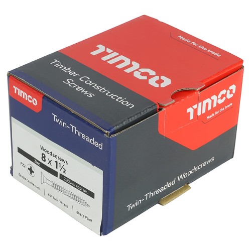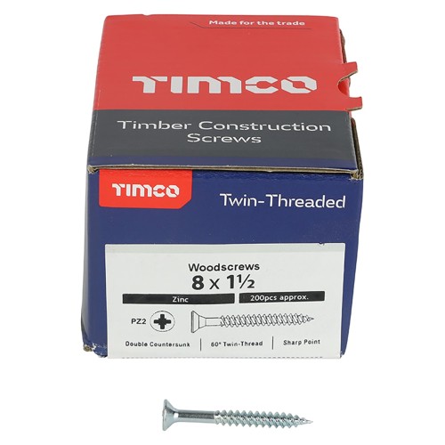 TIMCO Twin Threaded Pozi Countersunk Wood Screws - 8 x 1 1/2" - Zinc Plated - Pack of 200