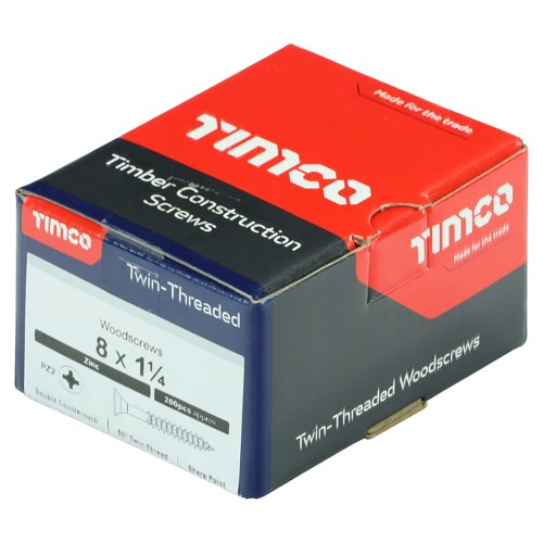 TIMCO Twin Threaded Pozi Countersunk Wood Screws - 8 x 1 1/4" - Zinc Plated - Pack of 200