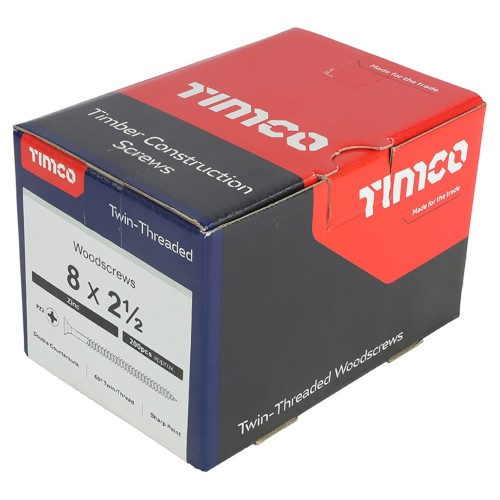 TIMCO Twin Threaded Pozi Countersunk Wood Screws - 8 x 2 1/2" - Zinc Plated - Pack of 200