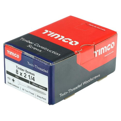 TIMCO Twin Threaded Pozi Countersunk Wood Screws - 8 x 2 1/4" - Zinc Plated - Pack of 200