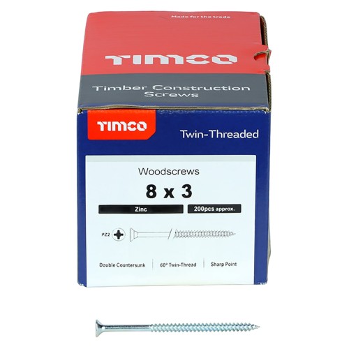 TIMCO Twin Threaded Pozi Countersunk Wood Screws - 8 x 3" - Zinc Plated - Pack of 200