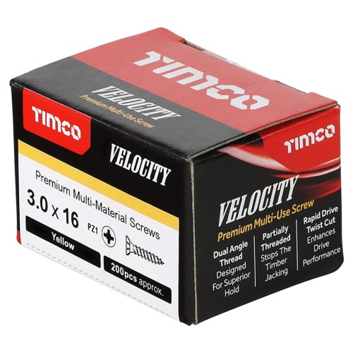 TIMCO Velocity Pozi Countersunk Wood Screws - 3.0 x 16mm - Yellow Zinc - Pack of 200