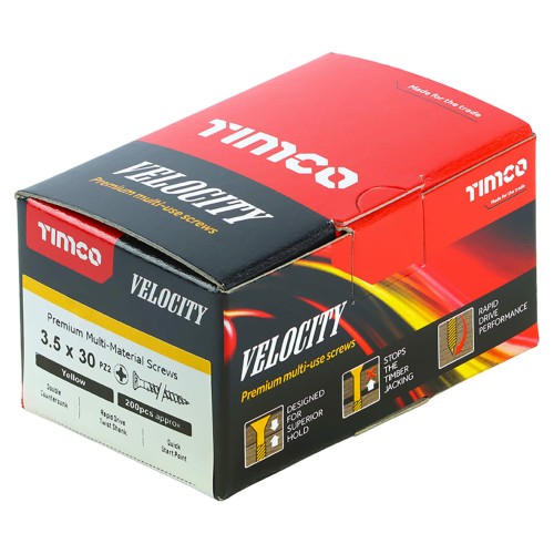 • TIMCO Velocity Pozi Countersunk Wood Screws - 3.5 x 30mm - Yellow Zinc - Pack of 200