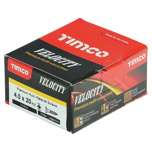 TIMCO Velocity Pozi Countersunk Wood Screws - 4.0 x 20mm - Yellow Zinc - Pack of 200