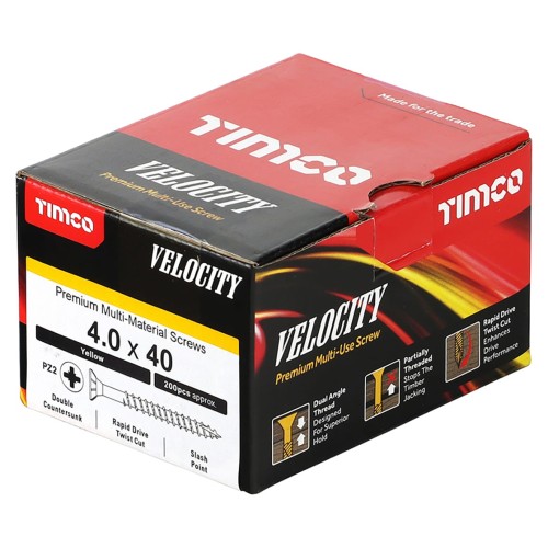 TIMCO Velocity Pozi Countersunk Wood Screws - 4.0 x 40mm - Yellow Zinc - Pack of 200