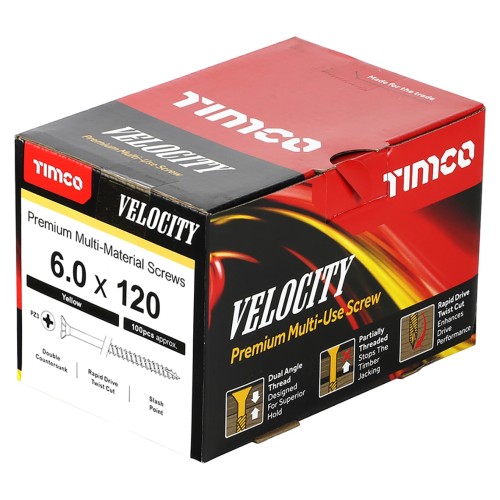 • TIMCO Velocity Pozi Countersunk Wood Screws - 6.0 x 120mm - Yellow Zinc - Pack of 100