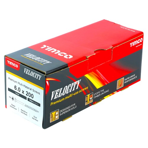 TIMCO Velocity Pozi Countersunk Wood Screws - 6.0 x 200mm - Yellow Zinc - Pack of 100