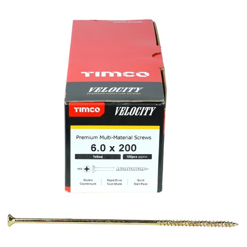 • TIMCO Velocity Pozi Countersunk Wood Screws - 6.0 x 200mm - Yellow Zinc - Pack of 100