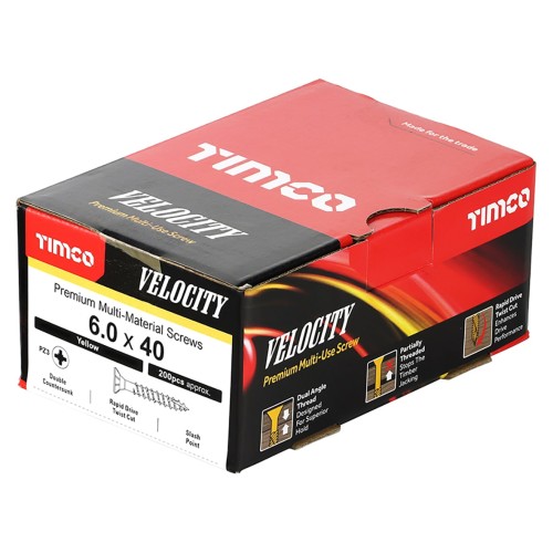 TIMCO Velocity Pozi Countersunk Wood Screws - 6.0 x 40mm - Yellow Zinc - Pack of 200