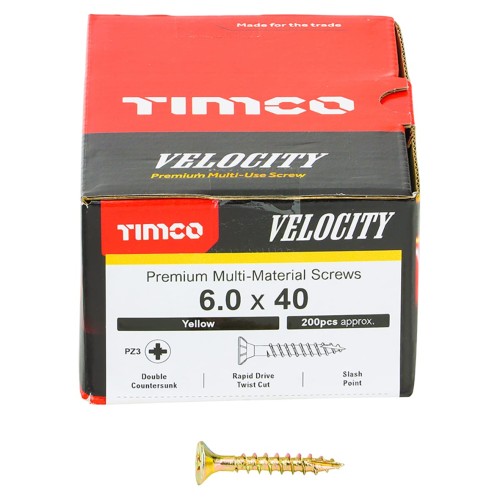 • TIMCO Velocity Pozi Countersunk Wood Screws - 6.0 x 40mm - Yellow Zinc - Pack of 200