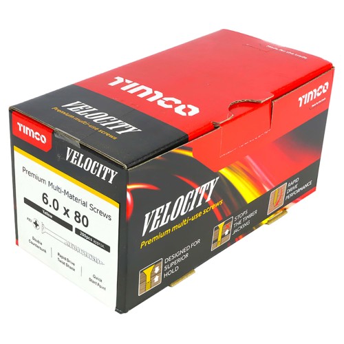 TIMCO Velocity Pozi Countersunk Wood Screws - 6.0 x 80mm - Yellow Zinc - Pack of 200
