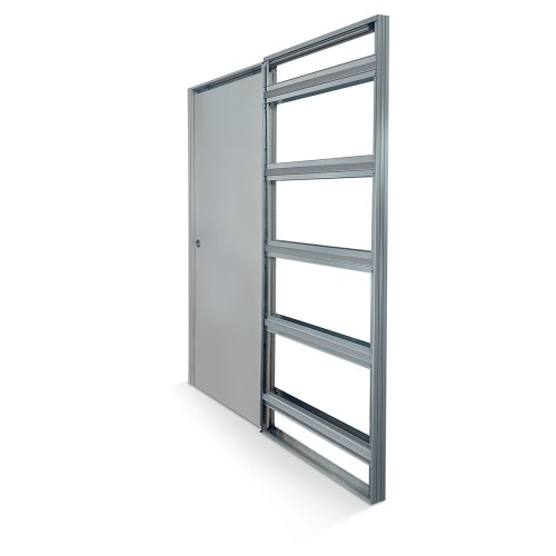 • Supplied with a white jamb to conceal the metal framework and sits flush with the plasterboard