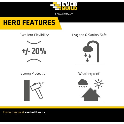 • Everbuild Everflex 500 Anti-Fungal Bath & Sanitary Silicone Sealant - 295ml - White