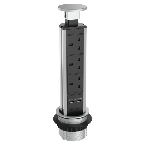 • Sensio SensioPod E Slimline 3 Gang Pop-Up Socket with 2 x USB Ports - Aluminium