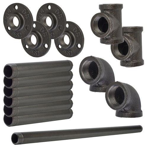 • Forwards facing hanging rail pipe shelf kit allows you to create your own industrial looking shelving with a useable hanging rail - simply use your own shelf and fixings, everything else is included