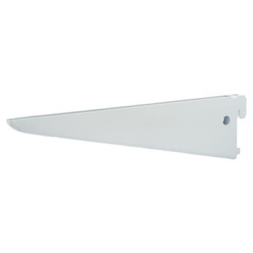 • Shelf bracket with a white finish for twin slot shelving - recommended maximum load is 55kg per shelf bracket