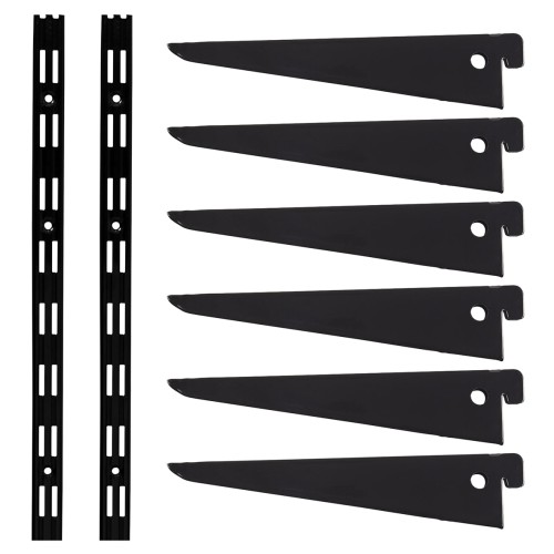 • Exel Twin Slot Shelving Kit - 2 x 1000mm Shelf Wall Uprights & 6 x 170mm Shelf Brackets - Black