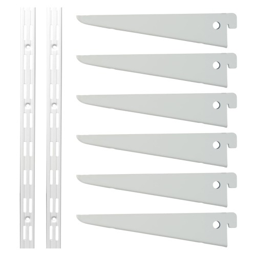 • Exel Twin Slot Shelving Kit - 2 x 1000mm Shelf Wall Uprights & 6 x 170mm Shelf Brackets - White