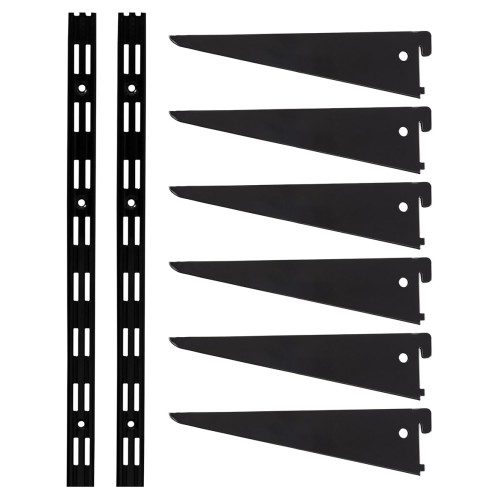 • Exel Twin Slot Shelving Kit - 2 x 1000mm Shelf Wall Uprights & 6 x 270mm Shelf Brackets - Black