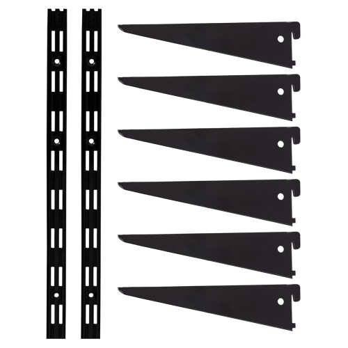 • Exel Twin Slot Shelving Kit - 2 x 1000mm Shelf Wall Uprights & 6 x 370mm Shelf Brackets - Black