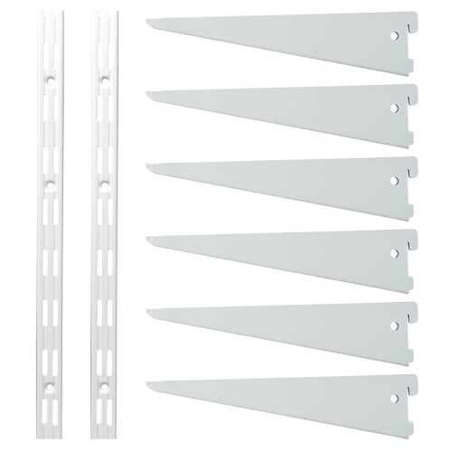 • Exel Twin Slot Shelving Kit - 2 x 1500mm Shelf Wall Uprights & 6 x 270mm Shelf Brackets - White