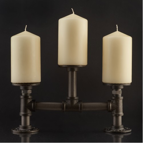 • Triple pipe candle holder designed to create your own industrial looking decorative piece - simply screw provided components together to create the desired look