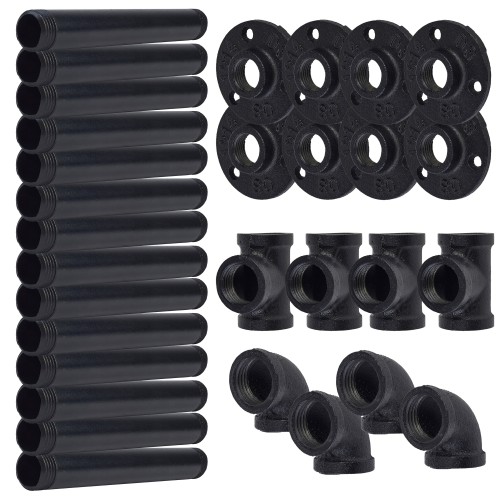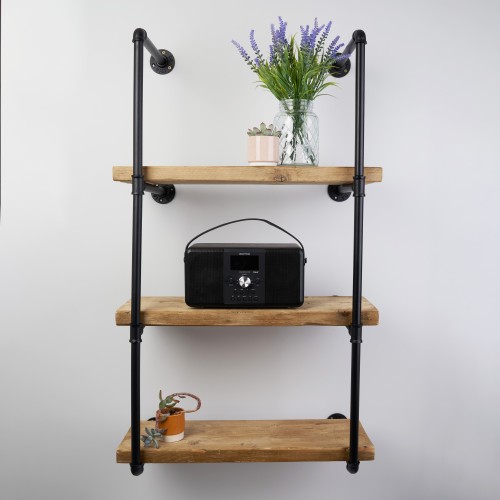 • 3 tier pipe shelf kit allowing you to create your own industrial looking shelving - simply use your own shelf and fixings, everything else is included!