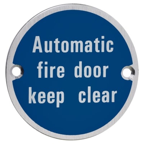 • Exel Automatic Fire Door Keep Clear Door Sign - 75mm Diameter - Satin Aluminium