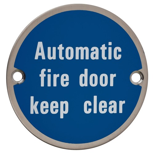 Exel Automatic Fire Door Keep Clear Door Sign - 75mm Diameter - Satin Stainless Steel