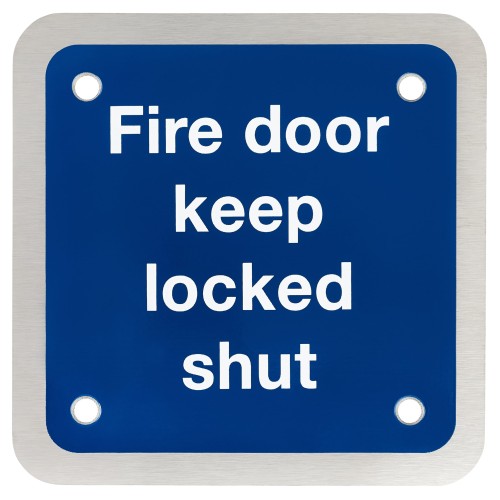 Exel Fire Door Keep Locked Shut Door Sign - Square - 90 x 90mm - Satin Stainless Steel