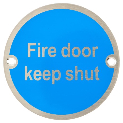 Exel Fire Door Keep Shut Door Sign - 75mm Diameter - Neutral Lettering - Satin Stainless Steel